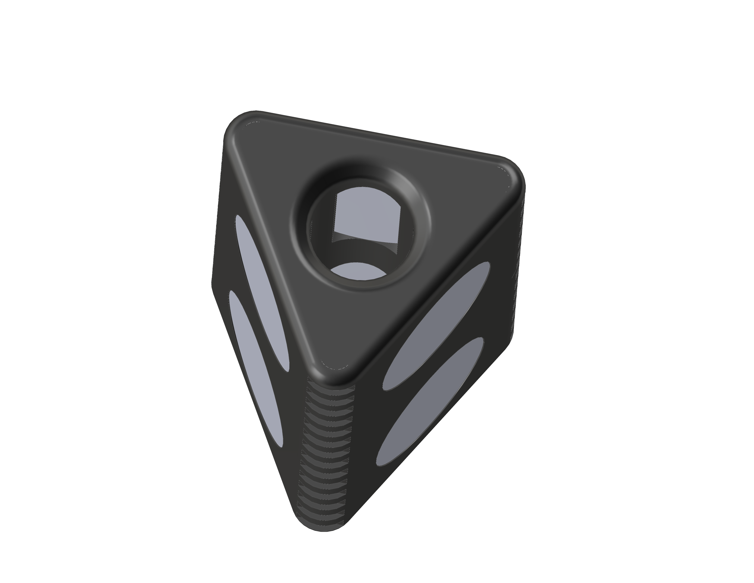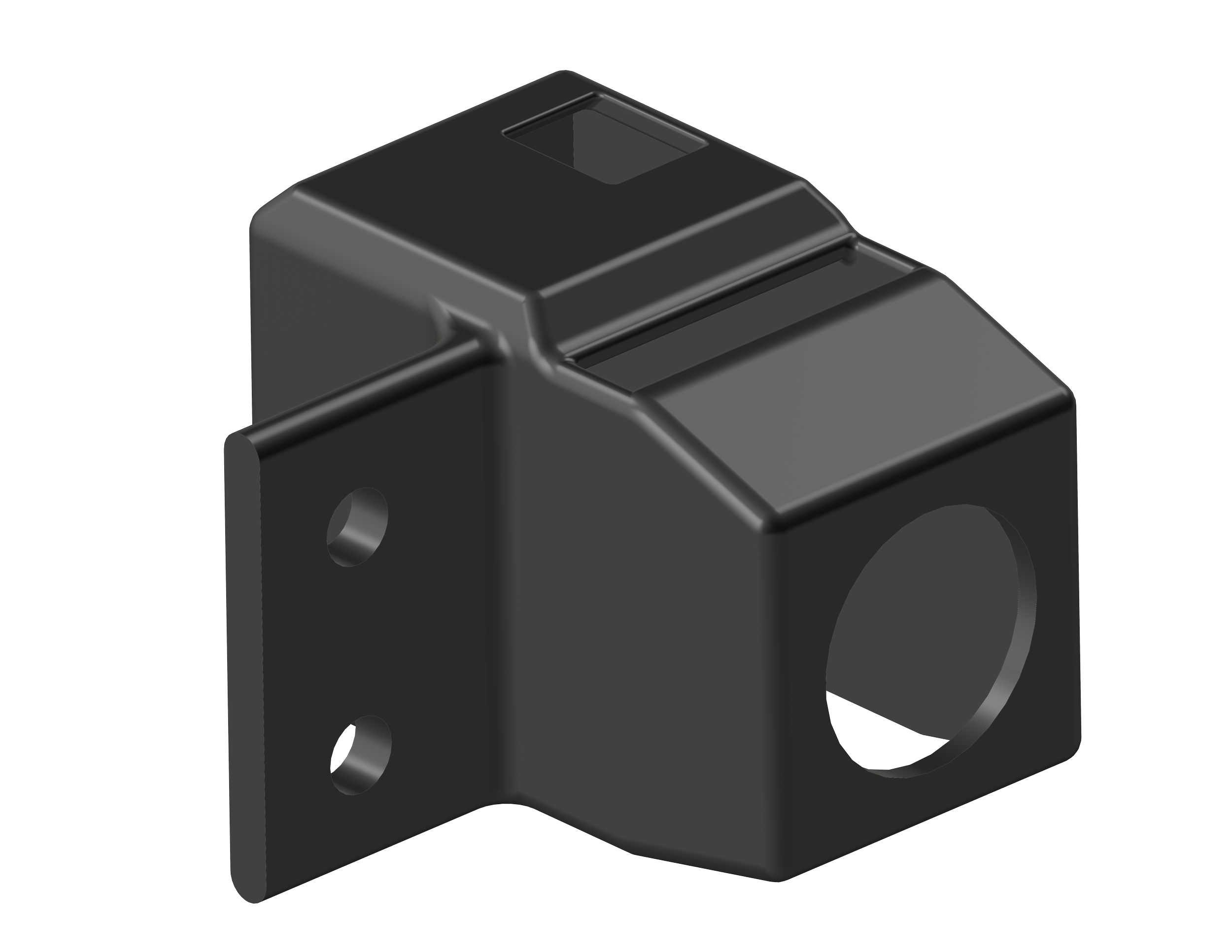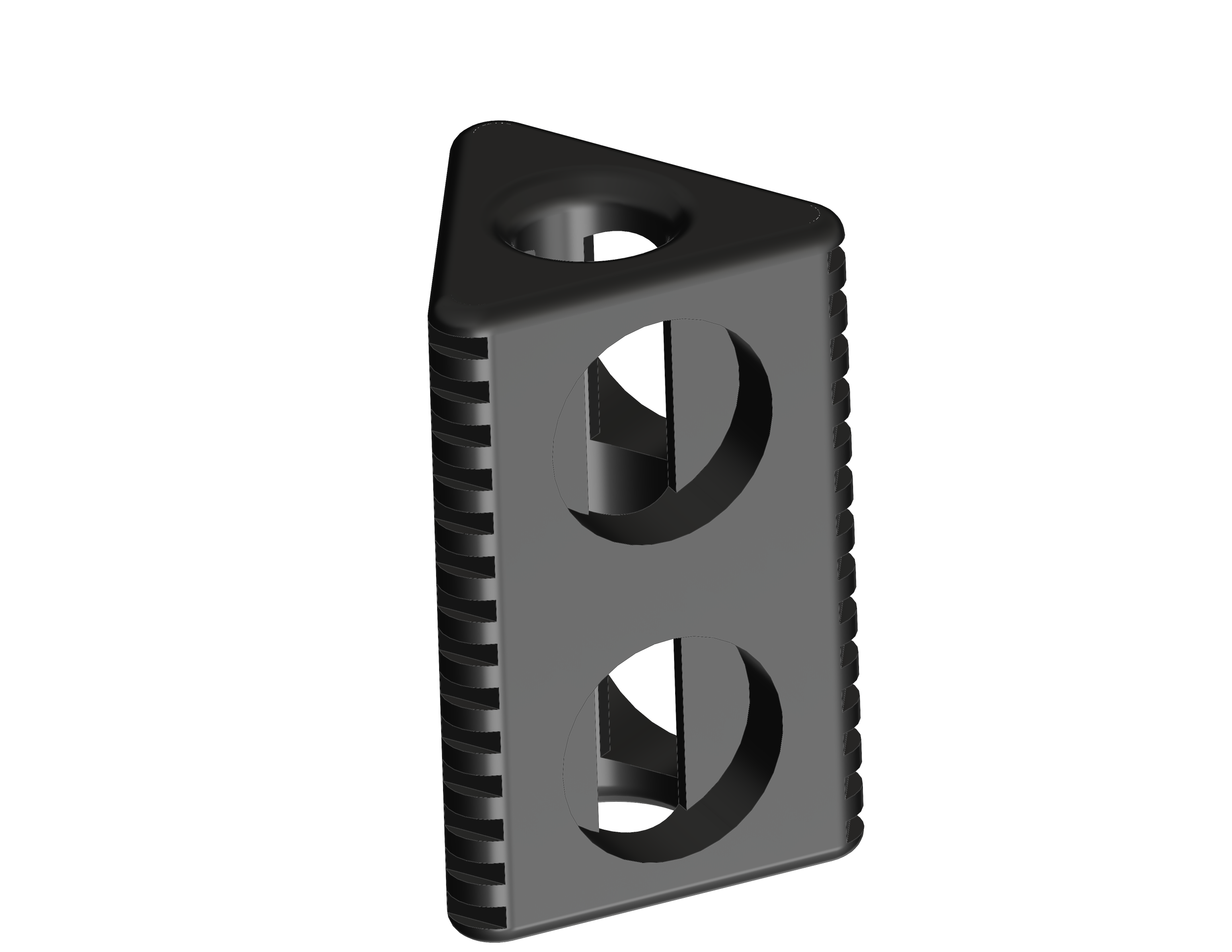 This part went through three major redesigns over the course of the design phase. It began as a bulky mount that would slide into the aluminum extrusions with 3D printed features as part of the mount, and ended up as this more professional-grade design that utilized holes in the back to bolt into the aluminum extrusions.