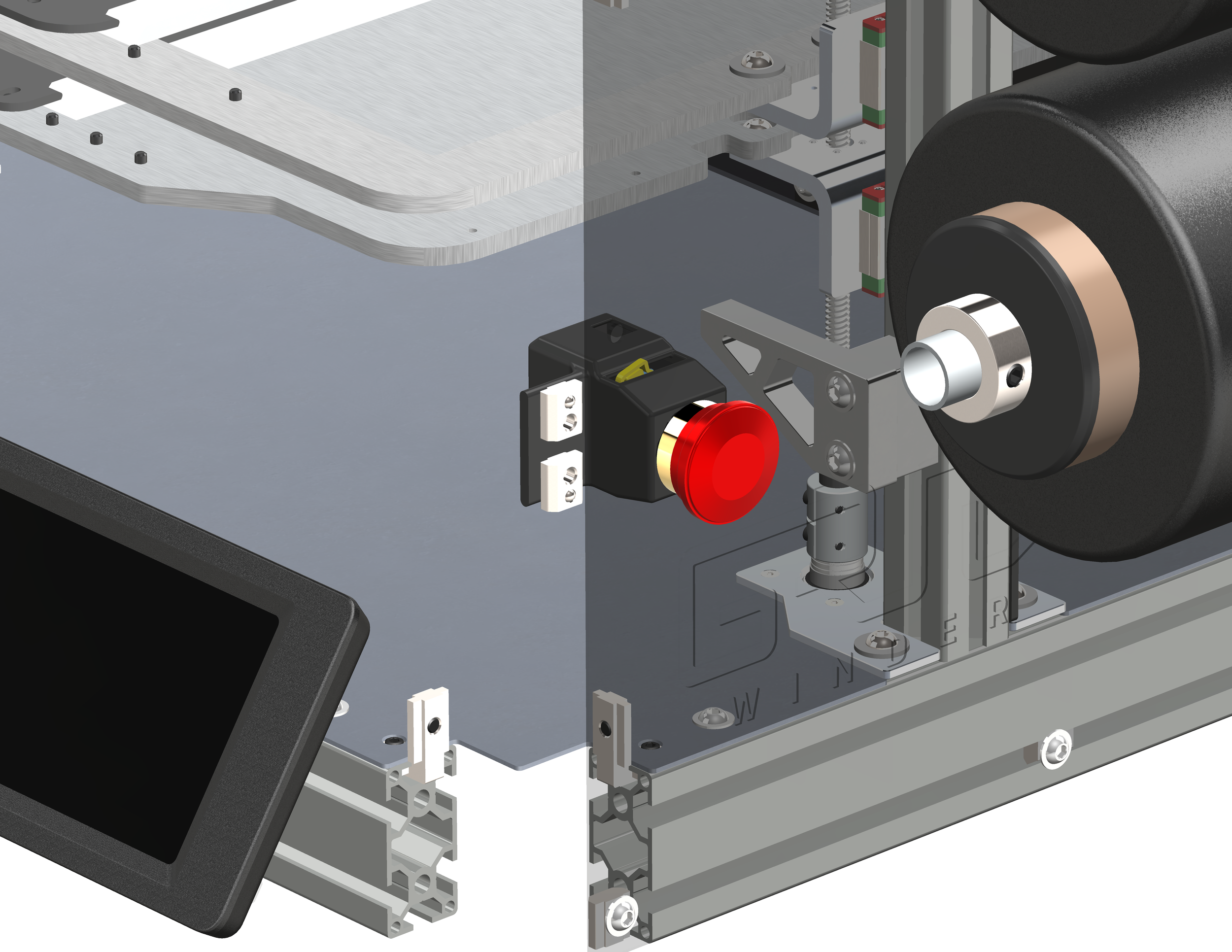 The front-facing user interface is where the user will be directly interacting with the machine, and therefore needs to not be distracting and bulky. The mount also needed to provide the most low-profile route for the wires coming from the screen.
